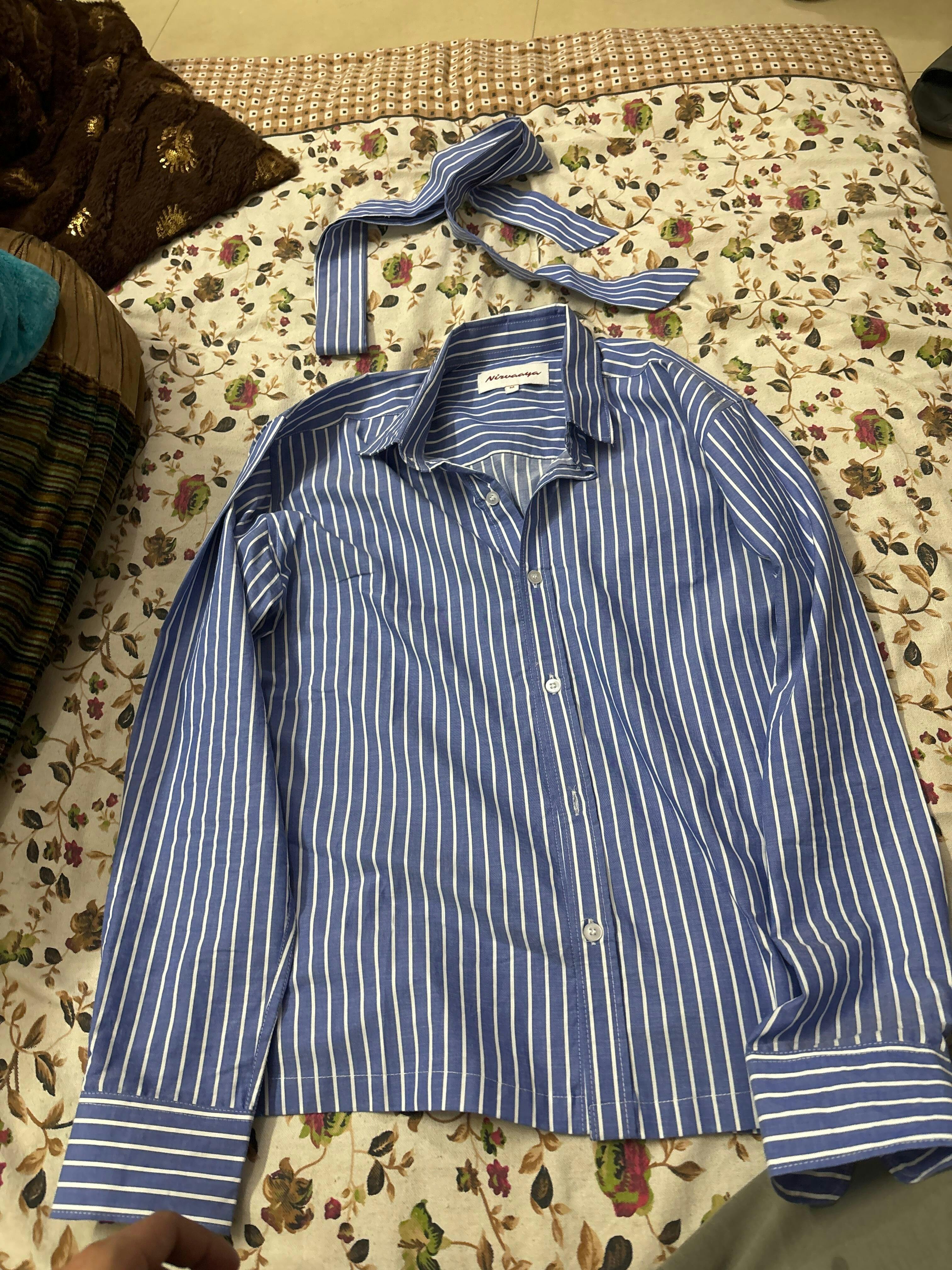 Details: Blue base with white stripes, detachable casual tie